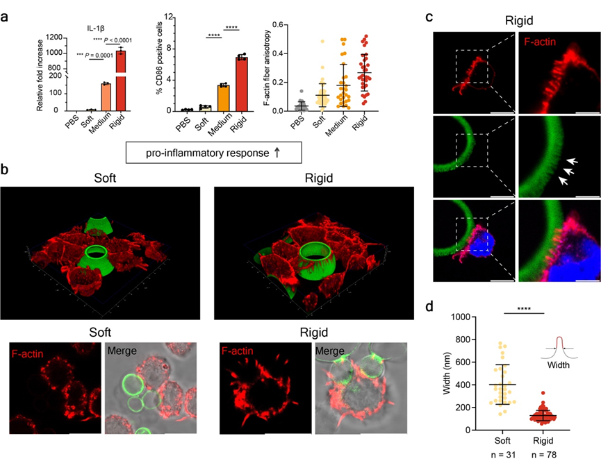 Figure 2. Rigid artificial cell interfaces promote macrophage sensing and polarization response via pseudopods.